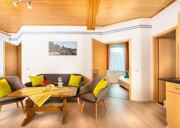 Het pension is gelegen binnen een 10-minuten rijafstand van de Emmabank. 5 km van het hotel, kunnen gasten een bezoek brengen aan Rathmannsdorf. Dit pand in Mittelndorf is op 3 km van het Schrammsteinaussicht geplaatst. Voor wie van ver komt, ligt de luchthaven Dresden op 57 minuten rijden.